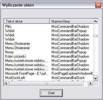 Pisząc o wyliczaniu okien mam na myśli użycie funkcji API, która pozwala na pobranie nazw wszystkich aktualnie otwartych okien w systemie oraz na pobranie szczegółów dotyczących używanych klas. Zdecydowałem się na umieszczenie tej porady w dziale ciekawostki ponieważ nie znalazłem dla niej praktycznego zastosowania, aczkolwiek po zmodyfikowaniu, funkcję użytą przy wyliczaniu okien można wykorzystać do zamykania programów uruchomionych w systemie, o ile znamy nazwę jego okna, ale o tym w innej poradzie.
