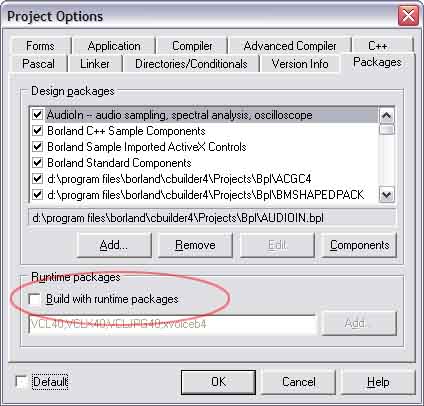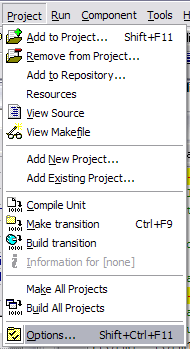 Jeżeli program, który stworzyłeś za pomocą środowiska Borland C++ Builder nie uruchamia się na komputerach innych niż Twój, to musisz go skompilować razem z bibliotekami. W tym celu wejdź do menu Project | Options: